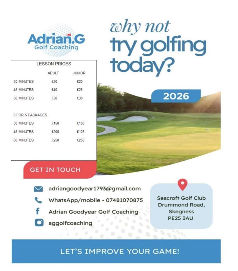 Adrian is dedicated PGA Assistant Golf Professional, He turned professional in 2018 and has since built a reputation for delivering high-quality coaching and player development across all levels of the game. Recently joining Seacroft Golf Club, he continues to expand his coaching and playing career within one of the region’s well-respected golfing environments.